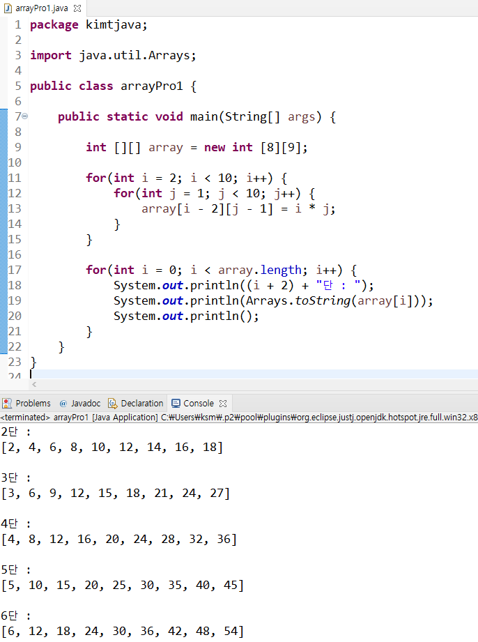 구구단 출력하기